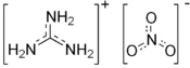 Le nitrate de guanidine est un composé chimique de formule C(NH2)3NO3. Il se présente sous forme d'une poudre blanche cristallisée utilisée dans certaines applications de générateur de gaz[3] ou de propulsion à propergol solide. Il s'agit du sel de guanidine HN=C(NH2)2 et d'acide nitrique HNO3. Lors de sa combustion, il libère beaucoup de gaz avec une température de flamme plutôt basse et une impulsion spécifique assez élevée de 177 s, ce qui l'a fait utiliser comme monergol dans le moteur Jetex (en) en aéromodélisme.