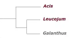Il existe onze espèces de nivéoles. Le cladisme et le séquençage de l'ADN ont montré que les espèces Leucojum vernum et Leucojum aestivum étaient plus étroitement apparentées au genre Galanthus qu'aux autres espèces jusqu'ici placées dans le genre Leucojum. Ces neuf autres espèces, plus éloignées, ont été placées dans le genre Acis - un genre proposé dès 1807, qui est ainsi revenu à l'ordre du jour.