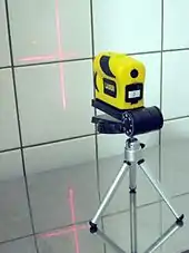 Certains appareils laser sont adaptés pour guider un outil (scie sauteuse par exemple) et pour déterminer des alignements lors de travaux d'aménagement et de décoration. Dans ce cas, une diode laser de faible coût est associée à une lentille cylindrique afin de former un plan illuminé. La verticalité de l'ensemble est assurée par un niveau à bulle.