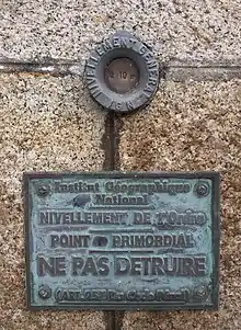 - sur la façade de l'église de Varennes-sur-Allier (Allier), deux repères voisins indiquent l'un 251,36 m et l'autre (plus récent) 248,46 m.