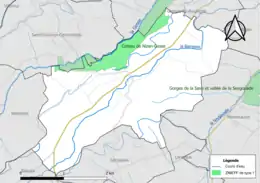 L’inventaire des zones naturelles d'intérêt écologique, faunistique et floristique (ZNIEFF) a pour objectif de réaliser une couverture des zones les plus intéressantes sur le plan écologique, essentiellement dans la perspective d’améliorer la connaissance du patrimoine naturel national et de fournir aux différents décideurs un outil d’aide à la prise en compte de l’environnement dans l’aménagement du territoire. Une ZNIEFF de type 1[Note 2] est recensée sur la commune[17] : le « coteau de Nizan-Gesse » (231 ha), couvrant 4 communes du département[18].