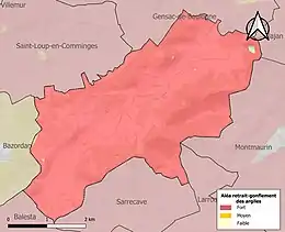 Le retrait-gonflement des sols argileux est susceptible d'engendrer des dommages importants aux bâtiments en cas d’alternance de périodes de sécheresse et de pluie. 99,8 % de la superficie communale est en aléa moyen ou fort (88,8 % au niveau départemental et 48,5 % au niveau national). Sur les 57 bâtiments dénombrés sur la commune en 2019, 57 sont en aléa moyen ou fort, soit 100 %, à comparer aux 98 % au niveau départemental et 54 % au niveau national. Une cartographie de l'exposition du territoire national au retrait gonflement des sols argileux est disponible sur le site du BRGM[25],[Carte 3].