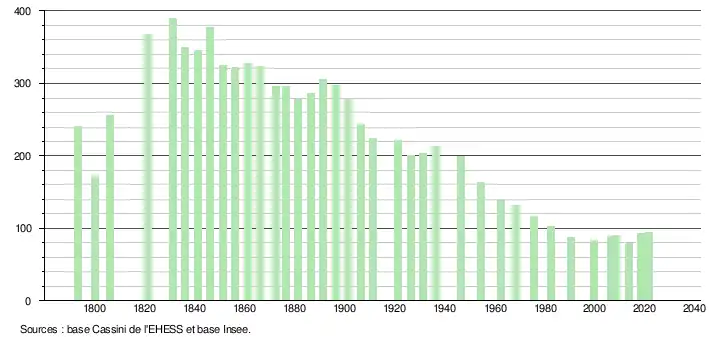 | Rang de la commune dans le département | 435 | 365 | 397 | 471 | 531 | 492 | 493 | 511 |