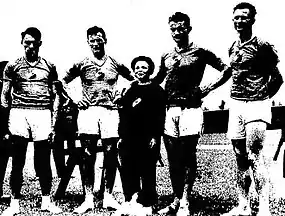 Le Quatre avec barreur du CA de Nantes en juillet 1936, (de gauche à droite) Noël, Fernand et Marcel Vandernotte, puis Cosmat et Chauvigné. | |||||||||