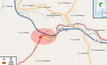 Au milieu de la journée du , ils rencontrent un bataillon du 7e régiment de cavalerie des États-Unis qui s’était retranché près de Nogeun-ri. Là, ils sont contraints de quitter la route et sont pris sous le feu de l’aviation américaine. Une centaine de personnes trouve la mort à cet endroit.