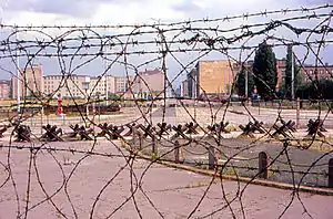 Les infrastructures formant le mur de Berlin comportaient un no man's land qui s'étendait sur le territoire de la RDA, le long du premier mur construit en 1961 sur les limites avec Berlin-Ouest. L'accès à cette zone côté est-allemand était bloqué grâce à la construction d'un deuxième mur. Le no man's land était surveillé par des gardes-frontières du régime communiste qui avaient pour ordre d'abattre toute personne se trouvant dans la zone entre ces deux murs.