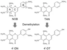 La nobilétine a été isolée et nommée en 1938 comme nouvelle hexaméthoxy-flavonone par un scientifique chinois Kwong-Fong Tseng[10], qui l'a isolé en utilisant du méthanol froid depuis le chenpi mandarine chinoise cultivar Chunking (Robinson et Tseng, 1938)[11], dont le nom botanique usuel était Citrus nobilis, Lour[12] à l'époque d'où son nom: nobilis > nobilétine[13].