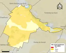 Le retrait-gonflement des sols argileux est susceptible d'engendrer des dommages importants aux bâtiments en cas d’alternance de périodes de sécheresse et de pluie. 77,2 % de la superficie communale est en aléa moyen ou fort (52,8 % au niveau départemental et 48,5 % au niveau national). Sur les 212 bâtiments dénombrés sur la commune en 2019, 182 sont en aléa moyen ou fort, soit 86 %, à comparer aux 70 % au niveau départemental et 54 % au niveau national. Une cartographie de l'exposition du territoire national au retrait gonflement des sols argileux est disponible sur le site du BRGM[18],[Carte 2].
