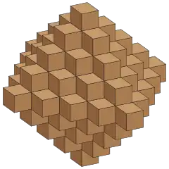 En répartissant les cubes en couches horizontales, le nombre octaédrique centré d'ordre , peut être vu comme la somme où est le nombre carré centré d'ordre .
