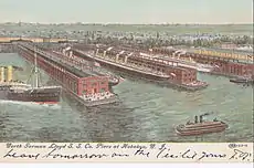 Un an plus tard, des services réguliers et planifiés ont été lancés entre le nouveau port de Bremerhaven et New York en utilisant deux Navires à vapeur 2,674 GRT, le Brême et le New York. Les crises économiques internationales ont rendu le démarrage de la NDL extrêmement difficile et l'entreprise a subi des pertes jusqu'en 1859[7]. Cependant, au cours des années suivantes, des liaisons de passagers vers Baltimore et la Nouvelle-Orléans ont été ajoutées au planning, et la société a d'abord loué puis, en 1869, acheté des installations sur le front de mer à Hoboken, New Jersey[8].