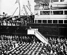 En août 1920, la NDL a conclu un accord d'agence avec la US Mail Steamship Co. (à partir de 1921, United States Lines). Cela a permis de reprendre le service transatlantique de Bremerhaven à New York avec l'ancien Rhein, désormais sous pavillon américain sous le nom de Susquehanna[29]. Le Columbus inachevé avait été attribué à la Grande-Bretagne après la guerre et avait été acheté en 1920 par White Star, qui avait perdu un tonnage important pendant la guerre et souhaitait également compenser la perte d'avant-guerre du Titanic. Cependant, le travail à Dantzig s'est déroulé très lentement. Enfin, à l'automne 1921, le soi-disant accord Columbus fut conclu, en vertu duquel le gouvernement allemand et la NDL s'engagèrent à faciliter l'achèvement rapide du Columbus en échange du retour du gouvernement britannique à la NDL de six petits navires qui avaient passé les années de guerre en Amérique du Sud : les paquebots postaux Seydlitz et Yorck, le Gotha et les cargos Göttingen, Westfalen et Holstein[30]. L'entreprise a également commencé à construire de nouveaux cargos et navires à passagers et à racheter d'autres navires. À la fin de 1921, le service vers l'Amérique du Sud a été repris avec le Seydlitz, et au début de 1922, le service est-asiatique avec le Westfalen. Le 12 février 1922, le service à New York avec les propres navires de la NDL reprit avec Seydlitz[31]. L'autre navire de la classe Columbus, le 32,354 GRT ancien Hindenburg, a été achevé en 1924 et nommé Columbus ; il a été placée en service régulier de passagers transatlantique.