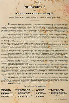 La compagnie maritime allemande Norddeutscher Lloyd (NDL) a été fondée par les marchands de Brême Hermann Henrich Meier et Eduard Crüsemann le 20 février 1857, après la dissolution de l'Ocean Steam Navigation Company, une entreprise commune germano-américaine[2],[3],[4],[5]. La nouvelle compagnie maritime n'avait aucun lien avec la société britannique de classification maritime Lloyd's Register ; au milieu du XIXe siècle, « Lloyd » était utilisé comme terme générique pour désigner une compagnie maritime[6] (un utilisateur antérieur du terme dans le même contexte était Österreichischer Lloyd basé à Trieste).