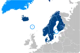 Le SR et l'UR de Suède, le KNR du Groenland et le Kringvarp Føroya des îles Féroé sont des membres associés.