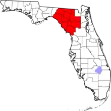 La région englobe les comtés d’Alachua, Bradford, Columbia, Gilchrist, Hamilton, Lafayette, Madison, Marion, Putnam, Suwannee et d’Union.