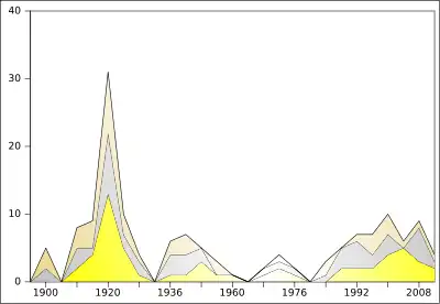 En été, c'est aux Jeux de 1920 à Anvers, que la moisson fut la meilleure avec 31 médailles (13 en or, 9 en argent et 9 en bronze).
