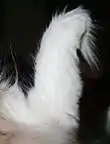 Les pattes sont moyennement hautes avec une ossature forte et une musculature puissante ; les postérieures sont plus hautes que les antérieures[11]. Des pattes trop courtes et mal proportionnées sont pénalisées en concours. Les pieds sont grands et ronds avec d'importantes touffes de poils entre les doigts[12]. La queue est longue (elle doit pouvoir toucher le cou), touffue[11] et portée dressée. Une queue trop courte est considérée comme un défaut[12].