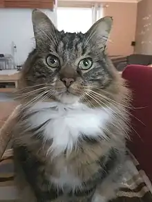 Le norvégien, également appelé chat des forêts norvégiennes ou norsk skogkatt, est une race de chats à poil mi-long originaire de Norvège. Ce chat de grande taille est caractérisé par sa fourrure à poils mi-longs très épaisse et son allure sauvage. D'apparence puissante, sa tête est caractérisée par son profil rectiligne et son menton fort.