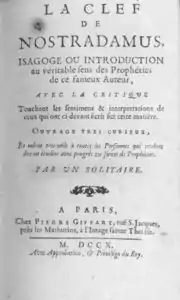 - Jean Le Roux, La Clef de Nostradamus, Isagoge ou Introduction au véritable sens des Prophéties de ce fameux auteur, avec la critique touchant les sentimens & interprétations de ceux qui ont ci-devant écrit sur cette matière (1710).