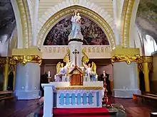 Une « chapelle de l'apparition » a été construite dans les styles néo-égyptien et gothique avec le clocher le plus haut de Lituanie. Il a été construit sur le rocher où se tenait la Vierge lors de l'apparition. Le rocher lui-même, que les pèlerins tiennent à embrasser, est situé sous l'autel de la chapelle[5].