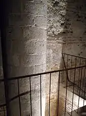 Après la galerie courbe qui dessert les chapelles absidiales de la crypte, s'ouvre dans le mur de gauche une niche abritant l'ouverture d'un puits qui est le lieu le plus ancien de la cathédrale. Appelé puits des « Saints Forts », autrefois « Lieux Forts », il a été probablement creusé à l'intérieur de l'enceinte de l'oppidum carnute d'Autricum à l'époque gallo-romaine[7]. Profond d'environ 33,5 mètres, il est alimenté par la nappe phréatique circulant sous la cathédrale et atteignant les courants qui rejoignent l'Eure[Note 3]. Alimentant en eau l'oppidum, il est resté en dehors de l'église jusqu'en 1020.
