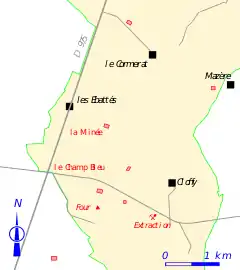 L'occupation des sols de la commune, telle qu'elle ressort de la base de données européenne d’occupation biophysique des sols Corine Land Cover (CLC), est marquée par l'importance des territoires agricoles (81,3 % en 2018), néanmoins en diminution par rapport à 1990 (83,7 %). La répartition détaillée en 2018 est la suivante : terres arables (66,8 %), forêts (16,7 %), prairies (10,5 %), zones agricoles hétérogènes (4 %), milieux à végétation arbustive et/ou herbacée (1 %), zones urbanisées (0,5 %), eaux continentales[Note 4] (0,5 %)[40]. L'évolution de l’occupation des sols de la commune et de ses infrastructures peut être observée sur les différentes représentations cartographiques du territoire : la carte de Cassini (XVIIIe siècle), la carte d'état-major (1820-1866) et les cartes ou photos aériennes de l'IGN pour la période actuelle (1950 à aujourd'hui)[Carte 1].