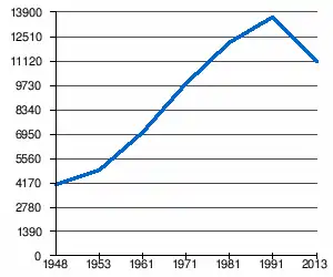 En 1991, sur un total de 41 665 habitants, la population se répartissait de la manière suivante[4] :