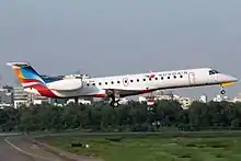 Un ancien Embraer ERJ-145 à l'atterrissage à l'Aéroport international Shah Jalal de Dacca en 2014.