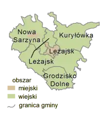 Carte du powiat (partie urbaine en marron et rurale en vert)