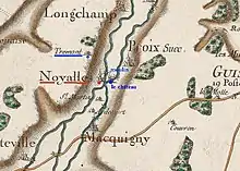 La carte de Cassini montre qu'au XVIIIe siècle, Noyales est une paroisse située sur un bras de la rive droite de l'Oise. Un moulin à eau est symbolisé par une roue dentée. Au nord-ouest, la ferme de Trémont est aujourd'hui un hameau. Le château qui est représenté est en réalité sur le terroir de la commune de Proix.
