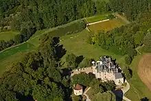 Le château de Brou fut bâti, selon une légende par le maréchal de Boucicaut[25] (Jean II Le Meingre, XVe siècle) mais plus sûrement par le Chevalier François de Gebert, Seigneur de Noyant et du Rivau[26]. Vers 1866-1868, M. le marquis de Moges fit faire des réparations importantes à ce château, sous la direction de M. de la Morandière, le même architecte qui construisit le viaduc de la Manse.