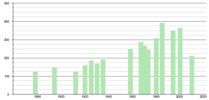 La population a augmenté de manière assez constante de la fin du XIXe jusque vers l'an 2000. Elle a depuis fortement chuté et s'établit actuellement à 210 personnes.