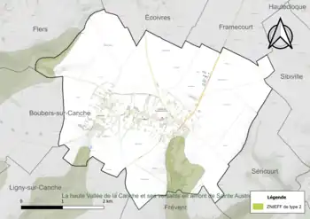 Le territoire communal comprend une ZNIEFF de type 2[Note 2] : la haute vallée de la Canche et ses versants en amont de Sainte-Austreberthe qui se situe dans le pays du Ternois. Il offre un relief de coteau abrupt au Nord et des pentes douces au Sud. Le fond de vallée est constitué de pâturages et de zones de cultures. Les versants les plus pentus et inaccessibles accueillent des boisements[9].