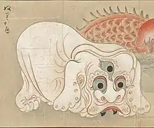 Nurikabe (ぬりかべ) de Bakemono no e (化物之繪, vers 1700), Collection Harry F. Bruning de livres et de manuscrits japonais, Collections spéciales L. Tom Perry, Bibliothèque Harold B. Lee, Université Brigham Young.