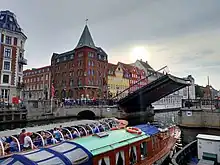La rue Toldbodgade franchit le canal environ à ses deux tiers.