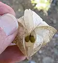 Les graines de cette espèce se trouvent dans des capsules de forme gonflée qui ont donné le nom vernaculaire de cette plante en anglais Chinese lantern (Lanterne chinoise). Les graines de couleur marron sont en forme de pois.