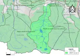- le « bassin versant du Haut-Louron » (6 872 ha), couvrant 8 communes dont deux dans la Haute-Garonne et six dans les Hautes-Pyrénées[25],
