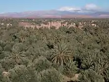 Le Maroc a perdu deux tiers de ses oasis en un siècle[21]. « Au cours du vingtième siècle, au Maroc, l'écosystème d'oasis s'est clairement détérioré en raison de multiples contraintes naturelles et anthropiques: sécheresse, salinité, maladie de Bayoud et absence de programmes de réhabilitation[22] ». Le palmier est un indicateur de l'état de santé oasienne[23], or, des 15 millions de palmiers dattiers qui se dressaient dans les oasis de l’Atlas sud, il ne reste que 4 millions d’arbres[22]. À la fin du XIXe siècle, le Maroc se classait au troisième rang mondial des pays producteurs de dattes ; près d'un siècle plus tard, il est devenu un importateur de produits de palmiers dattiers[22].