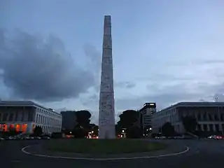 L'obélisque est placé au centre de la place, aujourd'hui nommée d'après Guglielmo Marconi, entouré d'un parterre de verdure. Entre 2009 et 2011, la sculpture The Awakening, de Seward Johnson, a été placée dans ce parterre de fleurs[3].