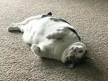 L'obésité des animaux de compagnie survient lorsqu'un excès de tissu adipeux s'accumule dans le corps[1] et est généralement définie lorsque la masse corporelle est supérieure d'au moins 20 % à son poids corporel optimal[2]. L'obésité est associée à des changements métaboliques et hormonaux[1].