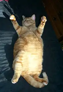 L'obésité féline désigne un excès de poids corporel d'au moins 20 % chez le chat. Il s'agit d'une maladie d'origine multifactorielle, à la fois génétique et environnementale. Sa prise en charge est multidimensionnelle : restriction calorique, gestion comportementale, augmentation de l'activité physique et suivi vétérinaire régulier. L'obésité peut également être le symptôme d'un autre trouble.