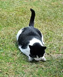 Le poids de l'animal doit être régulièrement suivi afin d'adapter son alimentation à son état corporel[6]. Il est recommandé d'apprendre au jeune chat à manger une quantité raisonnable de nourriture, en lui fournissant à volonté des croquettes à l'appétence moyenne, afin qu'il limite de lui-même sa consommation. Donner de l'alimentation humide, très appétante et riche, est déconseillé ; à l'inverse, rapprocher les repas est préférable afin d'éviter que le chat ne consomme trop d'aliment[6].