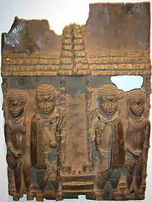 L'oba vit dans un immense palais en bois situé au centre de la ville. Les murs sont décorés de plaques de laiton sculptées.
