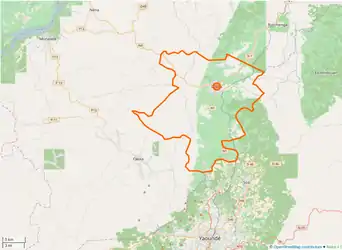 La ville est située sur la route nationale 1 (axe Yaoundé-Bertoua) à 38 km au nord de Yaoundé et à 46 km à l'ouest du chef-lieu départemental Monatélé. La localité drainée par la rivière Afoumla et son affluent le Ntsas se trouve dans le bassin versant du fleuve Sanaga.