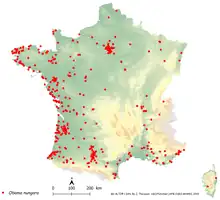 En France, Obama nungara a été signalé dans 72 des 96 départements de France métropolitaine. L’espèce est particulièrement abondante le long de la côte atlantique, de la frontière espagnole à la Bretagne, et le long de la côte méditerranéenne, de la frontière espagnole à la frontière italienne. Plus de la moitié des signalements provenaient d’une altitude inférieure à 50 m et aucun signalement ne dépassait 500 m ; les régions montagneuses telles que les Alpes, les Pyrénées et le Massif central ne sont pas envahies. L’abondance locale peut être impressionnante, avec des centaines de spécimens trouvés dans un petit jardin[11].