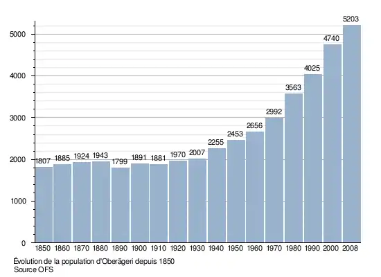 Le graphique suivant résume l'évolution de la population d'Oberägeri entre 1850 et 2008[3] :