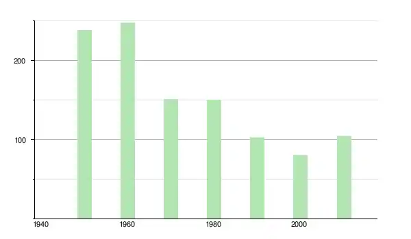 | 1970 | 151 | ▼ −39,11 % | |