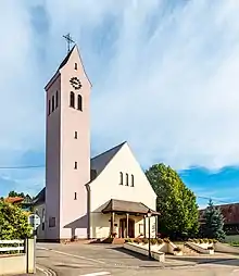 L'église d'Oberrœdern, qui se nomme église du Cœur-Immaculé-de-Marie, se situe sur la route principale du village[24]. Elle a été construite entre mars 1962 et mai 1965.
