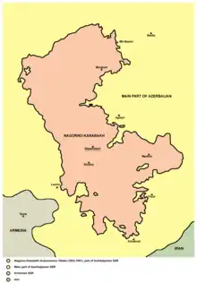 Pendant soixante-cinq ans, la situation n'évolue plus jusqu'en 1988 où, profitant de la perestroïka, la région autonome se déclare en sécession le [3]. D'après le recensement de 1989, le Haut-Karabagh compte 189 000 habitants dont 145 500 Arméniens et 41 000 Azéris, dans cet oblast alors enclavé en Azerbaïdjan[4].