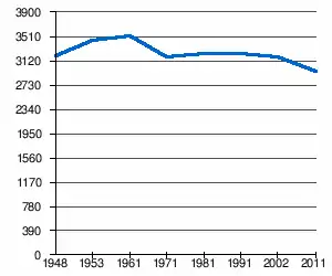 En 2002, l'âge moyen de la population était de 39,1 ans pour les hommes et de 42 ans pour les femmes[3].
