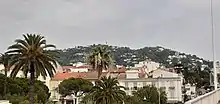 Vue sur le massif de la Californie avec au sommet l'observatoire de Super-Cannes depuis la Croisette.
